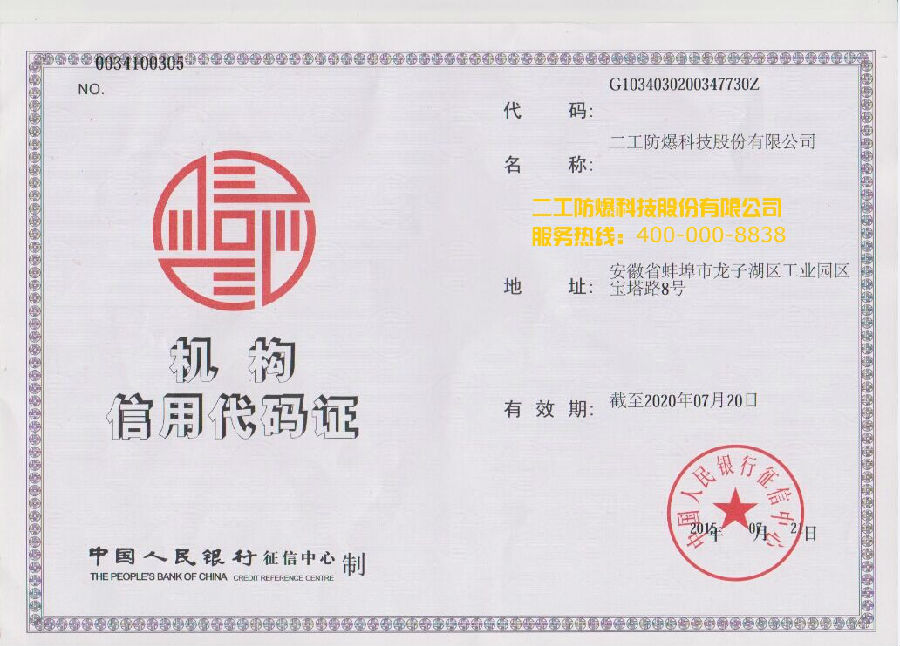 • 機構信用代碼證